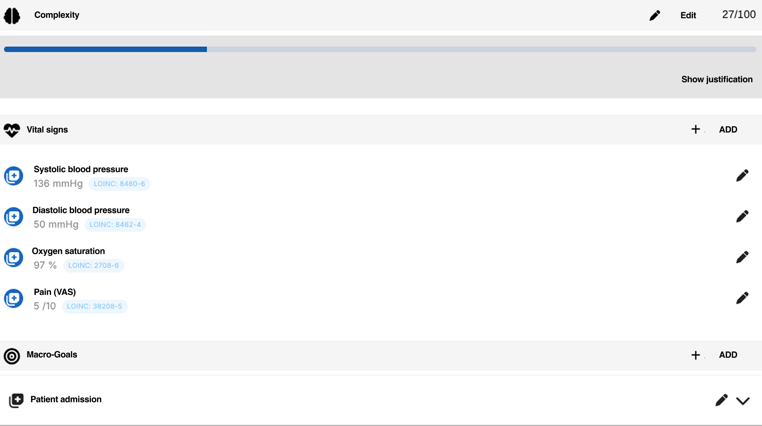A second AI structures the data by detecting vital signs, converting nursing clinical handovers into targeted SNOMED CT entries, and then evaluates case complexity on a scale from 1 to 100, with justification.